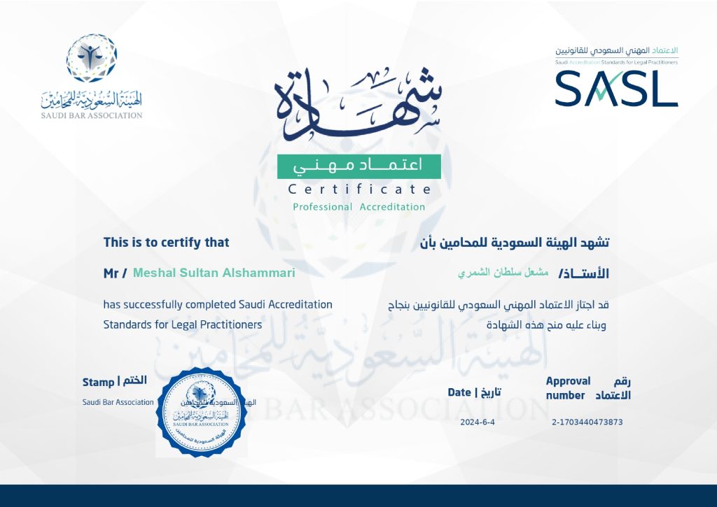 محامي مرخص، عضو أساسي لدى الهيئة السعودية للمحامين، موثق معتمد لدى وزارة العدل، مسجل عقاري معتمد لدى الهيئة العامة للعقار.